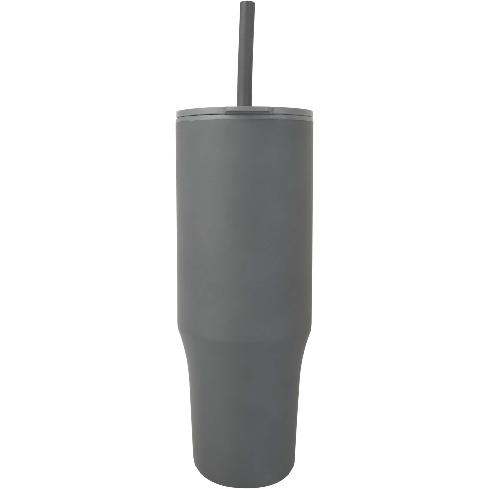Strapabíró külső fallal rendelkező tumbler, amely RCS tanúsítvánnyal rendelkező újrahasznosított rozsdamentes acélból készült, belső fala pedig műanyag. Beépített, élelmiszeripari szilikon szívószállal és fröccsenésgátló, rányomható tetővel a kényelmes ivás érdekében. Meleg italokhoz is használható, de ezek fogyasztása szívószállal nem ajánlott. A forró italok hűtéséhez javasolt a tető eltávolítása. Űrtartalom: 900 ml. Kézi mosogatás javasolt.