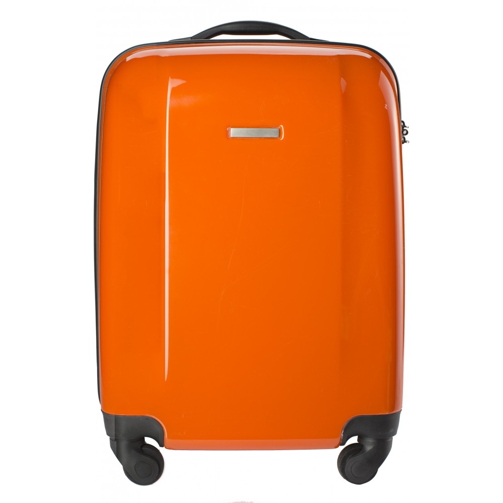 Keményfedelű bőrönd PC/ABS műanyagból, 4 körbeforgó kerékkel, beépített számzárral. Emblémzásra alkalmas fémlappal, ami fixen a terméken van.