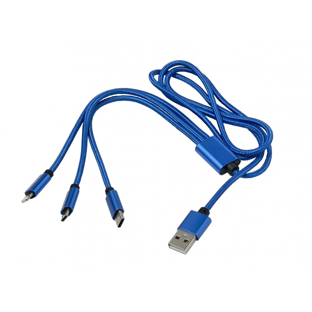 Töltőkábel többféle csatlakozóval, kobaltkék