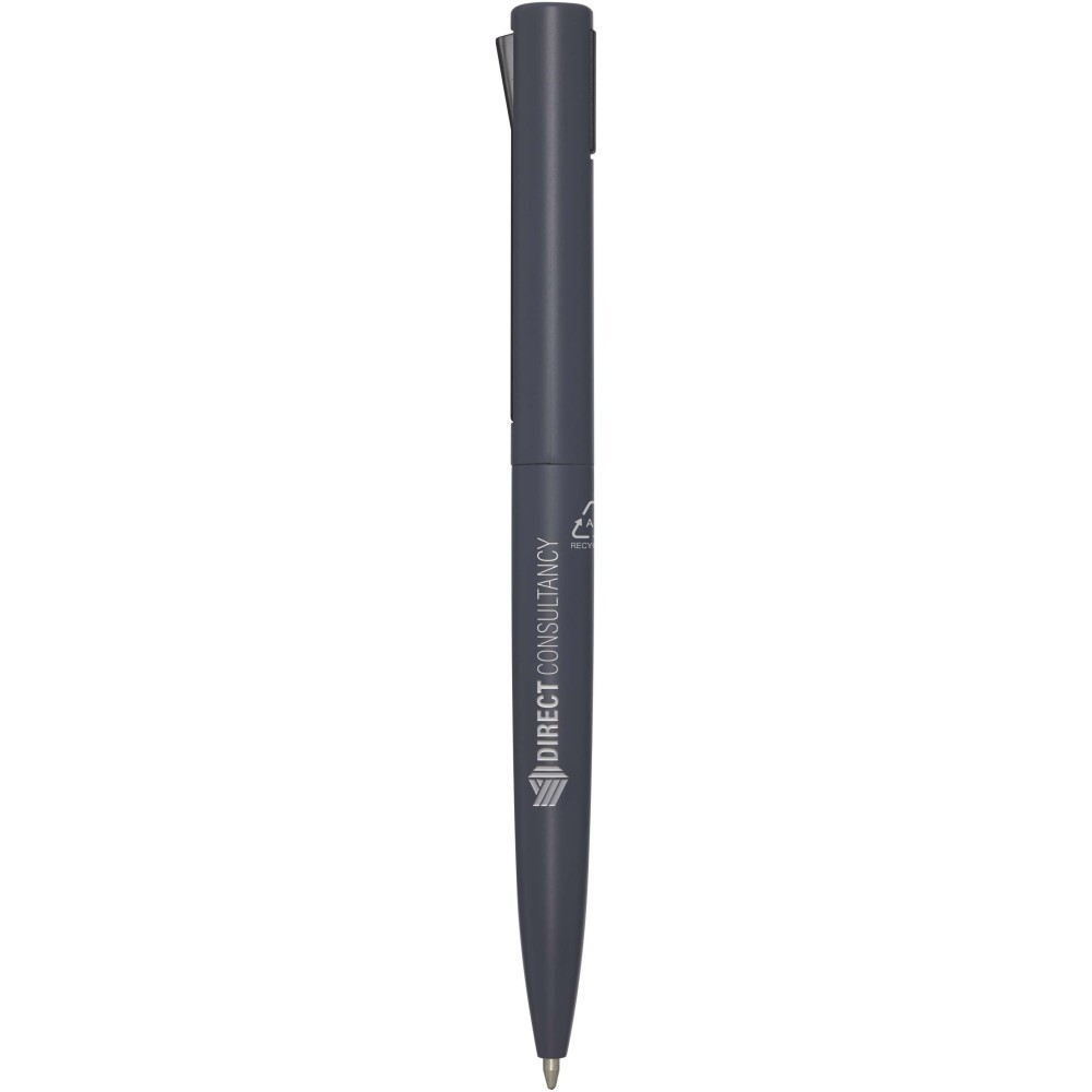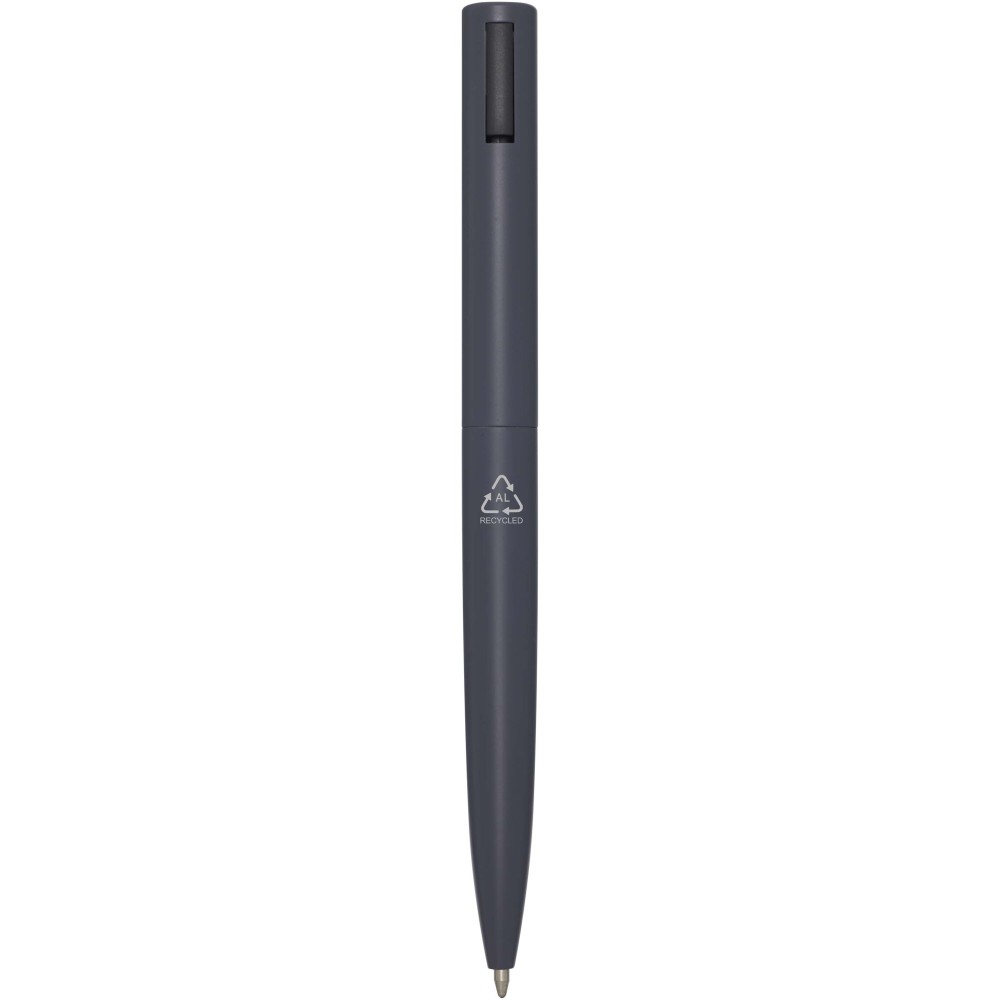 Golyóstoll, melynek felső teste újrahasznosított műanyagból, alsó része pedig újrahasznosított alumíniumból készült. A klipsz vasból készült. Fekete tollbetéttel. Írási hossz: 1000 méter. Hegyméret: 1,0 mm.