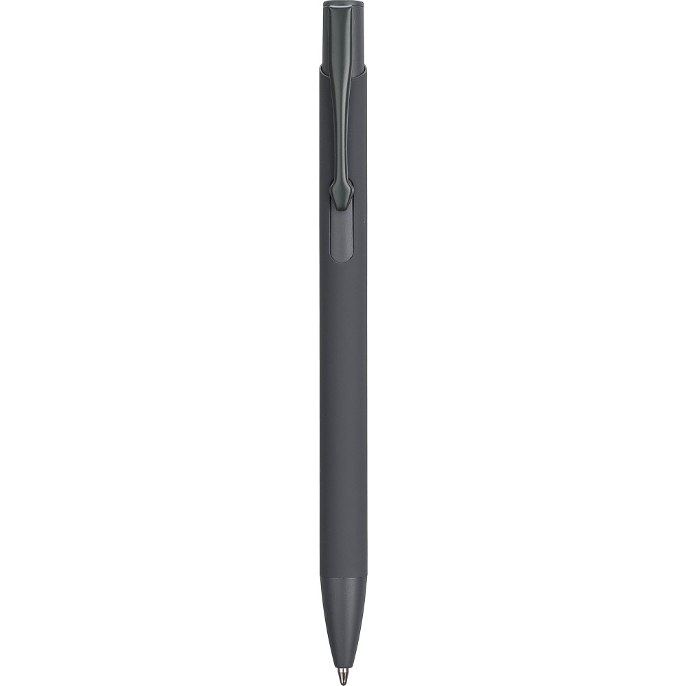 Újrahasznosított alumíniumból készült golyóstoll gumírozott bevonattal a tolltesten. A klipsz, a tollhegy és a nyomógomb azonos színű. A klipsz fémből, a tollhegy műanyagból készült. Kb. 800 méter íráshossz. Gravírozott újrahasznosított alumíniumra utaló logóval. Kék tollbetéttel.