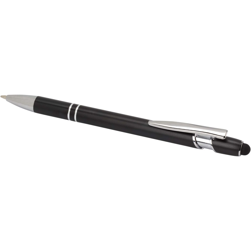 Kish golyóstoll ezüst színben. A toll teste újrahasznosított alumíniumból, az érintőceruza pedig szilikonból készült, így érintőképernyős eszközökhöz is használható. Az újrahasznosított alumínium csökkenti a hulladéklerakók terhelését, segít megőrizni a természeti erőforrásokat, és célja az üvegházhatású gázok kibocsátásának mérséklése. Tinta színe: kék. Íráshossz: 800 méter. Tollhegy mérete: 1,0 mm.
