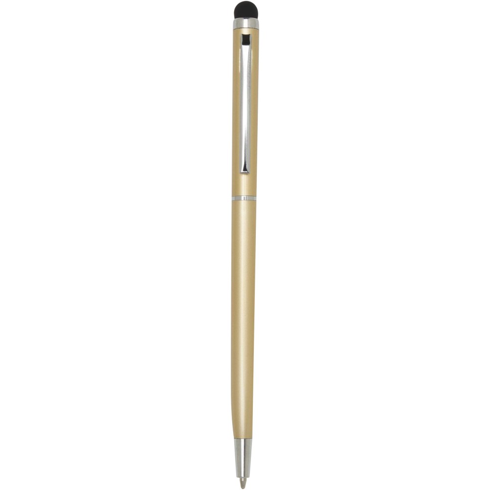 Ez a sokoldalú érintőceruzával ellátott golyóstoll tartós alumíniumból készült. A toll sima írást biztosít, míg a beépített érintőképernyős vég a pontos online navigációhoz ideális. Tinta színe: kék. Íráshossz: 1000 méter. Tollhegy mérete: 1,0 mm.