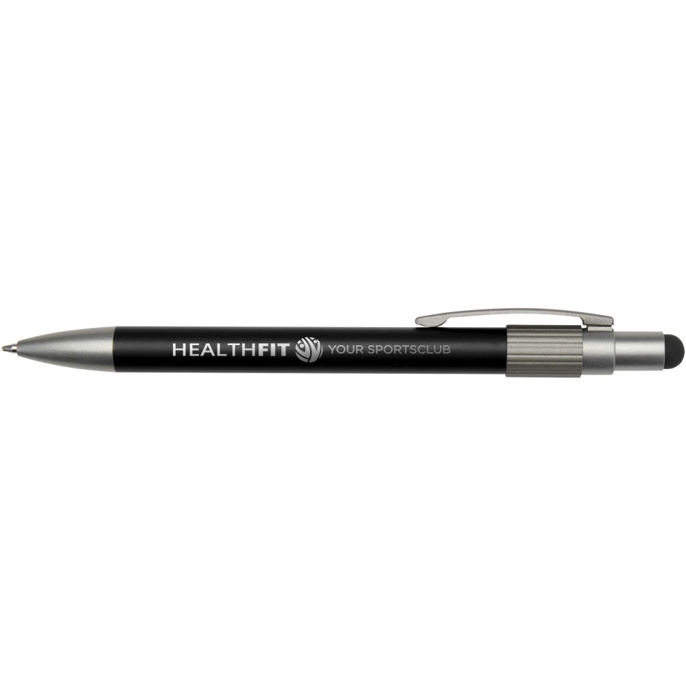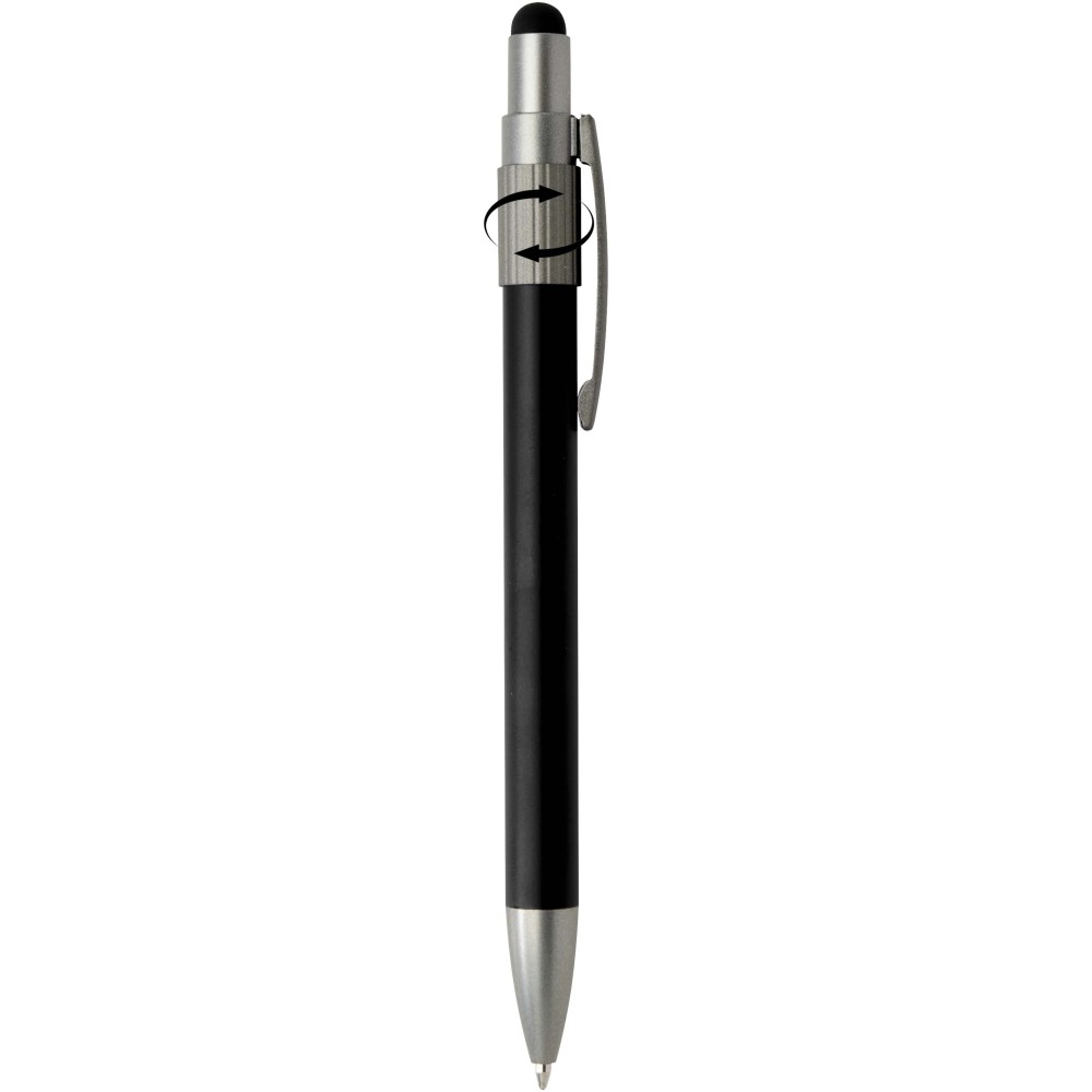 Golyóstoll érintővéggel és fidget spinnerrel, amely a praktikumot játékos dizájnnal ötvözi. A toll RCS tanúsítvánnyal rendelkező újrahasznosított alumíniumból készült, sima működésű nyomógombos szerkezettel és az érintőképernyőkhöz használható érintővéggel rendelkezik. A toll tetején a fidget spinner kiváló stresszoldó. Fekete tollbetéttel, íráshossza 1000 méter.