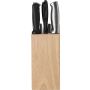 Konyhai készlet rozsdamentes acélból és PP műanyagból. A gumifa talp 13 db konyhai eszközt tartalmaz: olló, élező és különböző kések.