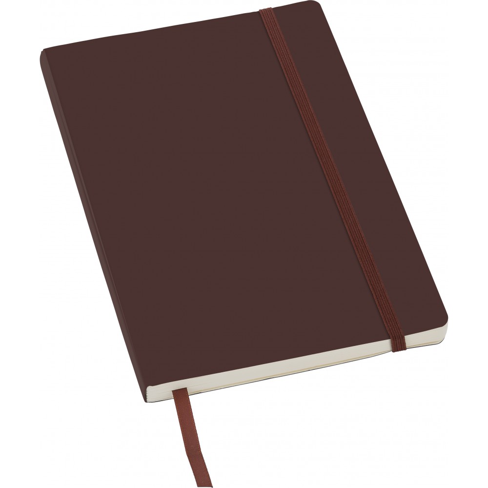 Puhafedelű, hajlékony borítójú füzet 80 vonalas lappal, a borító belsejében zsebbel, gumis záródással és könyvjelzővel. PU.