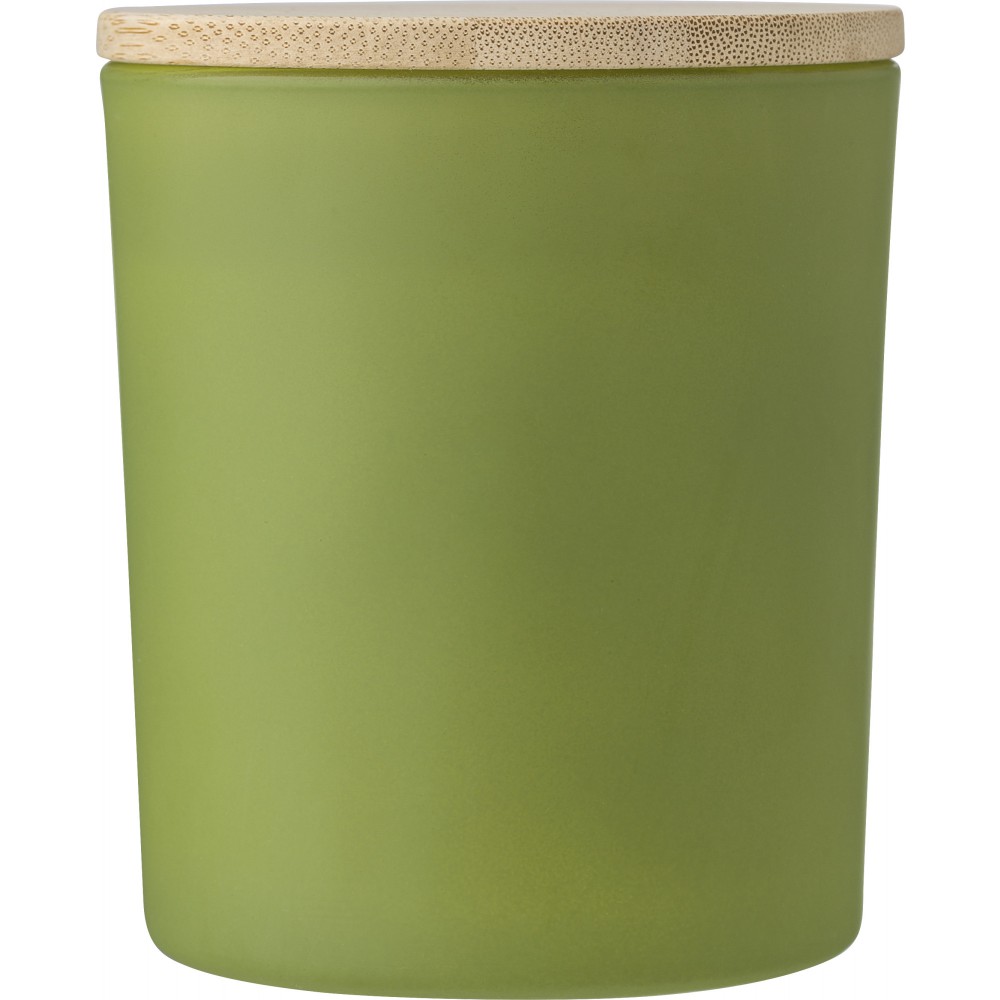 Üveggyertya növényi alapú viasszal és bambusz fedővel. A gyertya főleg növényi alapú viaszt (karnaubaviaszt) tartalmaz, égési ideje körülbelül 46 óra. Négy illat az üveg színétől függően: fahéj (piros), vanília (fehér), szantálfa (fekete) és jázmin (zöld). Egyenként, fehér papírpalástba csomagolva.