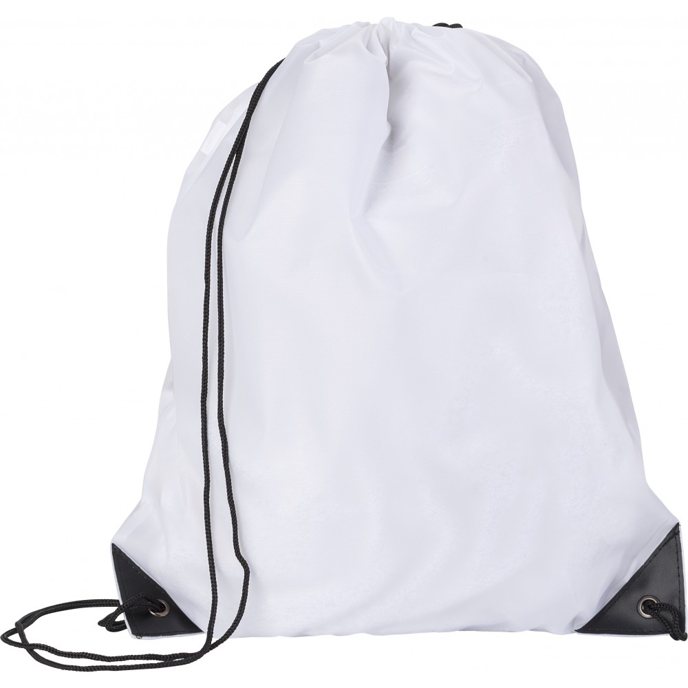 Tornazsák erősített sarkokkal és nylon húzózsinórral. 210D poliészter.
