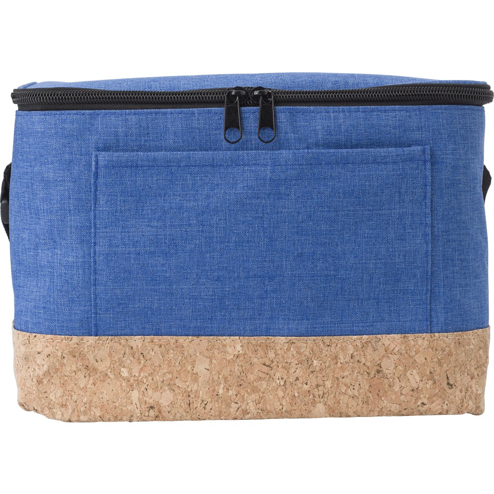 Poliészter (600D) hűtőtáska cipzárral és parafa aljjal, hat darab 0,5 literes doboz számára. A belső anyag EVA.