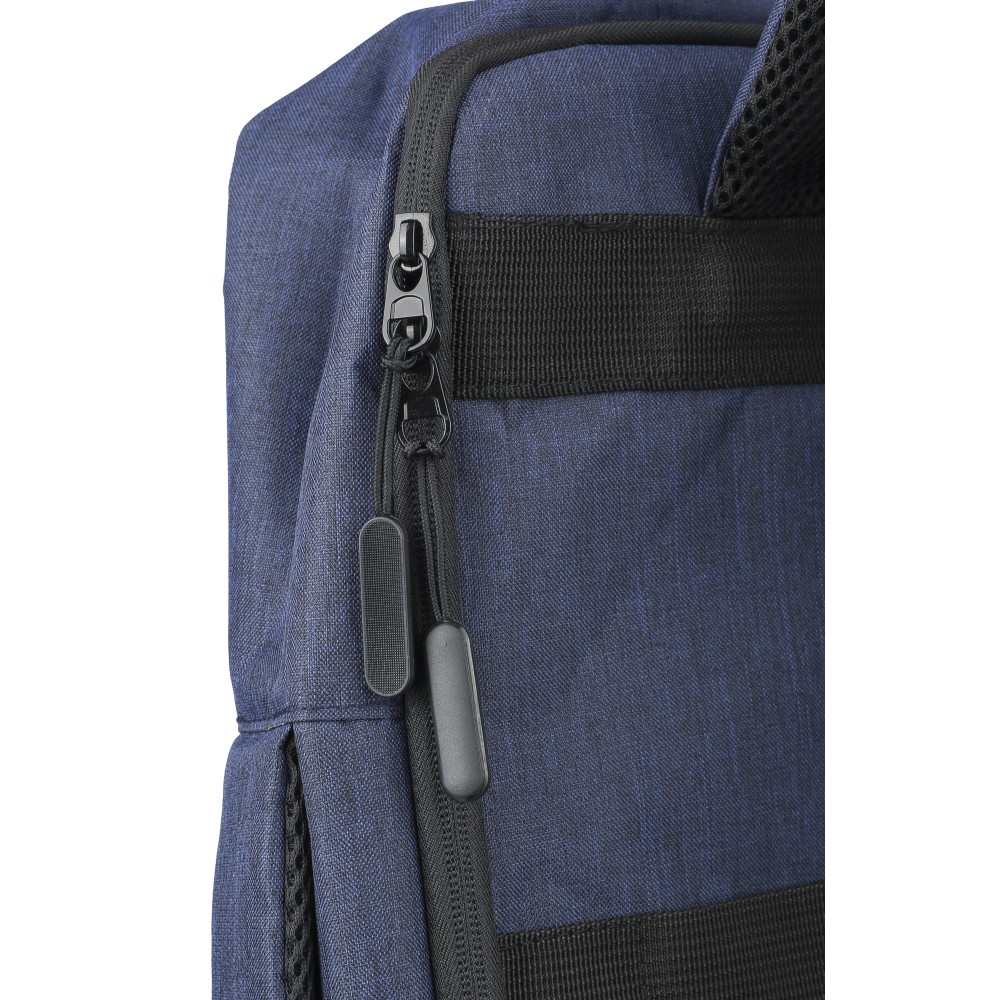 Laptophátizsák 300D rPET poliészter anyagból, 210D rPET béléssel. Egy nagy cipzáras rekesszel, számtalan belső zsebbel, tépőzáras laptoptartó zsebbel 15"-es laptop számára és 12 literes űrtartalommal. Megerősített, szellőző hátrésszel, állítható vállpánttal, oldalsó hordozófüllel és gurulóstáskára való felhelyezésre alkalmas pánttal. Teherbíró képesség: 10 kg.