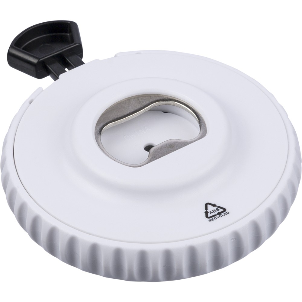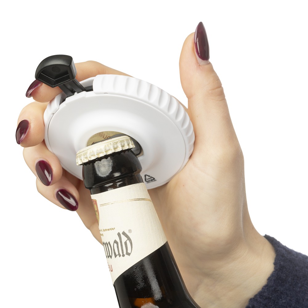 Újrahasznosított ABS-ből készült mechanikus dobókocka felső nyomógombbal. A gomb megnyomásával a mechanika véletlenszerűen jelenít meg egy 1?6 közötti számot. A hátoldalon sörnyitó található. A terméken Recycled ABS (újrahasznosított alapanyagra utaló) logó található. Újrahasznosított politasakba csomagolva.