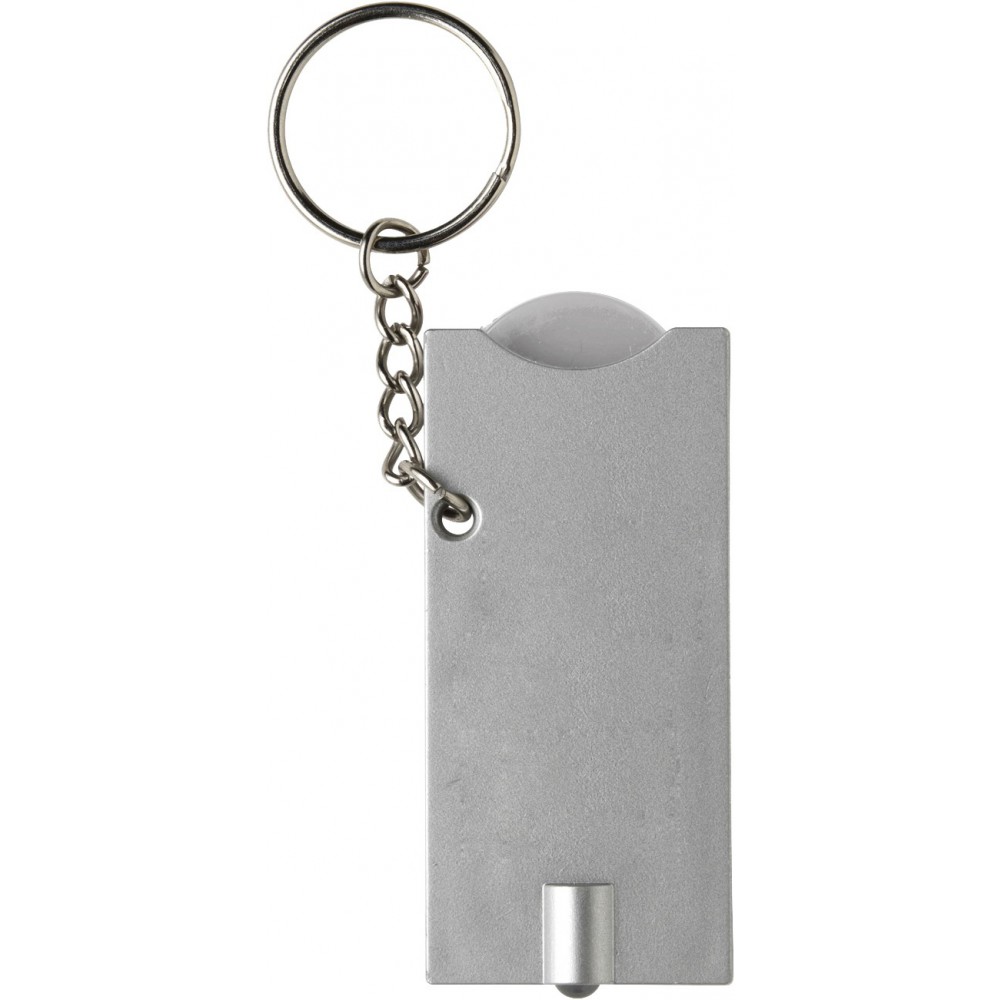 Világítós kulcstartó érmetartóval, ezüst