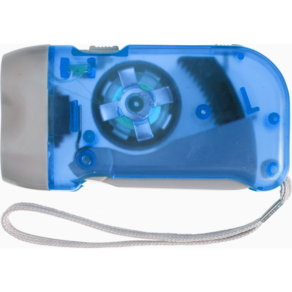Műanyag dinamós zseblámpa, átlátszó kék/szürke