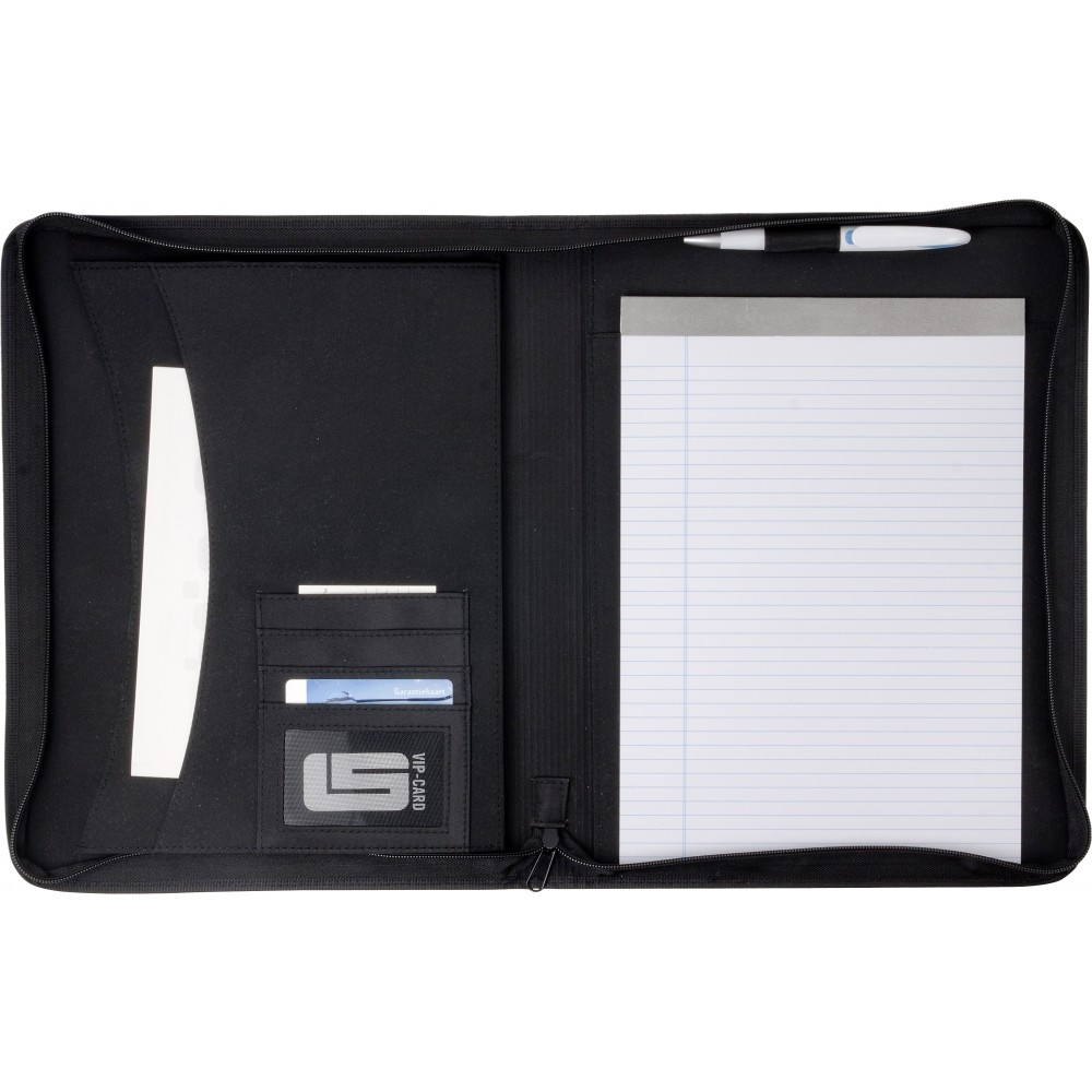 A4-es cipzáras műbőr mappa jegyzettömbbel, fekete