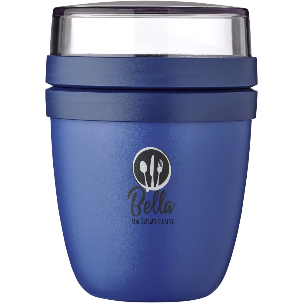 Az Ellipse Mini ételdoboz tökéletes különféle snackekhez, például joghurthoz müzlivel vagy leveshez krutonnal. Két praktikus rekesszel rendelkezik egy strapabíró tartályban, így az összetevőket szépen elkülönítheti egymástól. Kompakt mérete miatt ideális iskolatáskába való elhelyezésre, így gyors és kényelmes étkezést biztosít. A felső átlátszó tartály 120 ml-es, ideális körülbelül 50 gramm müzli vagy gyümölcs tárolására, az alsó tartály pedig 300 ml-es. Szivárgásmentes és mosogatógépben mosható. BPA-mentes.