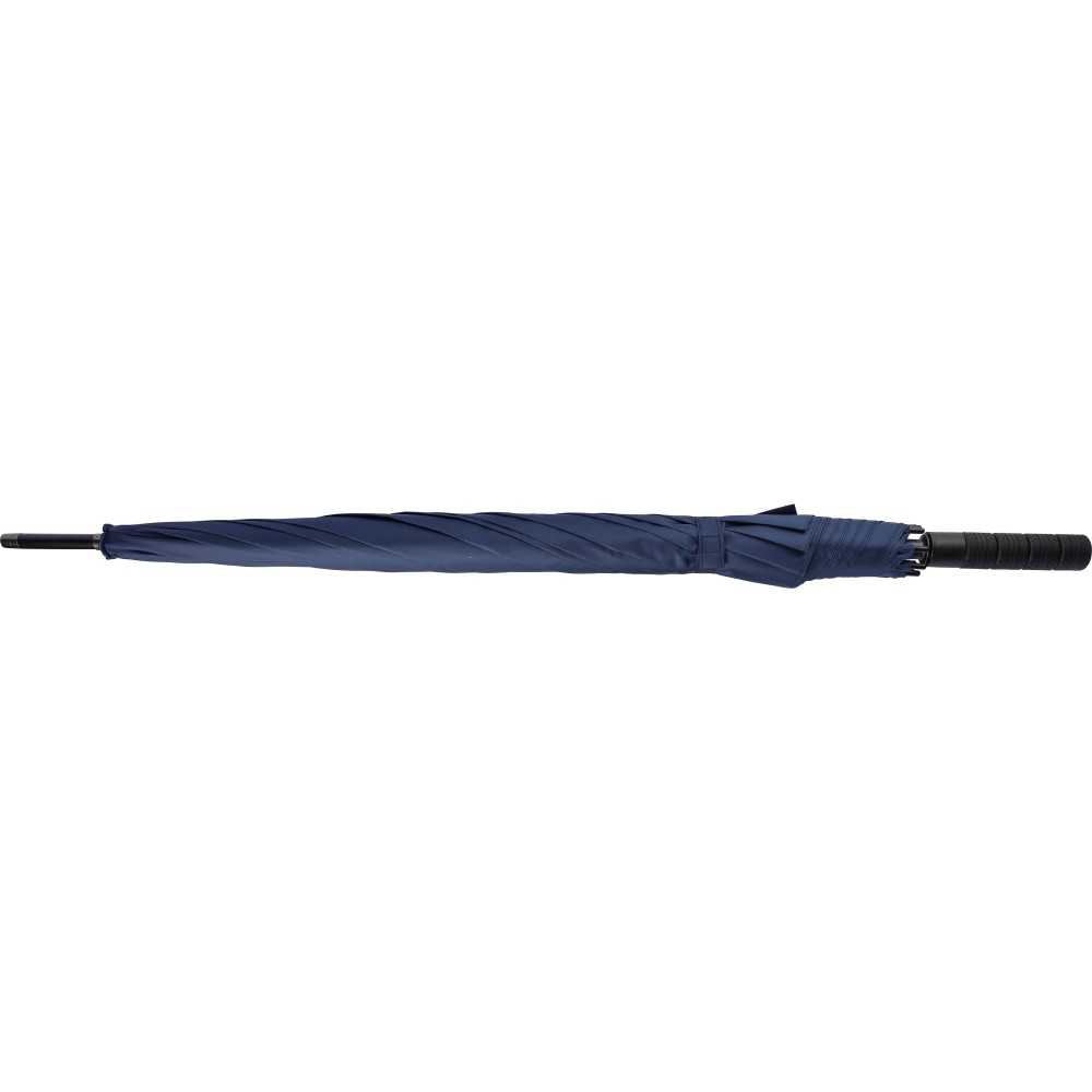 Automata esernyő (27 inch) nyolc panellel és üvegszálas vázzal. Nyomógombbal nyitható, tépőzáras záródásán RPET címkével, tokkal. Szélálló. Anyaga: RPET 190T.