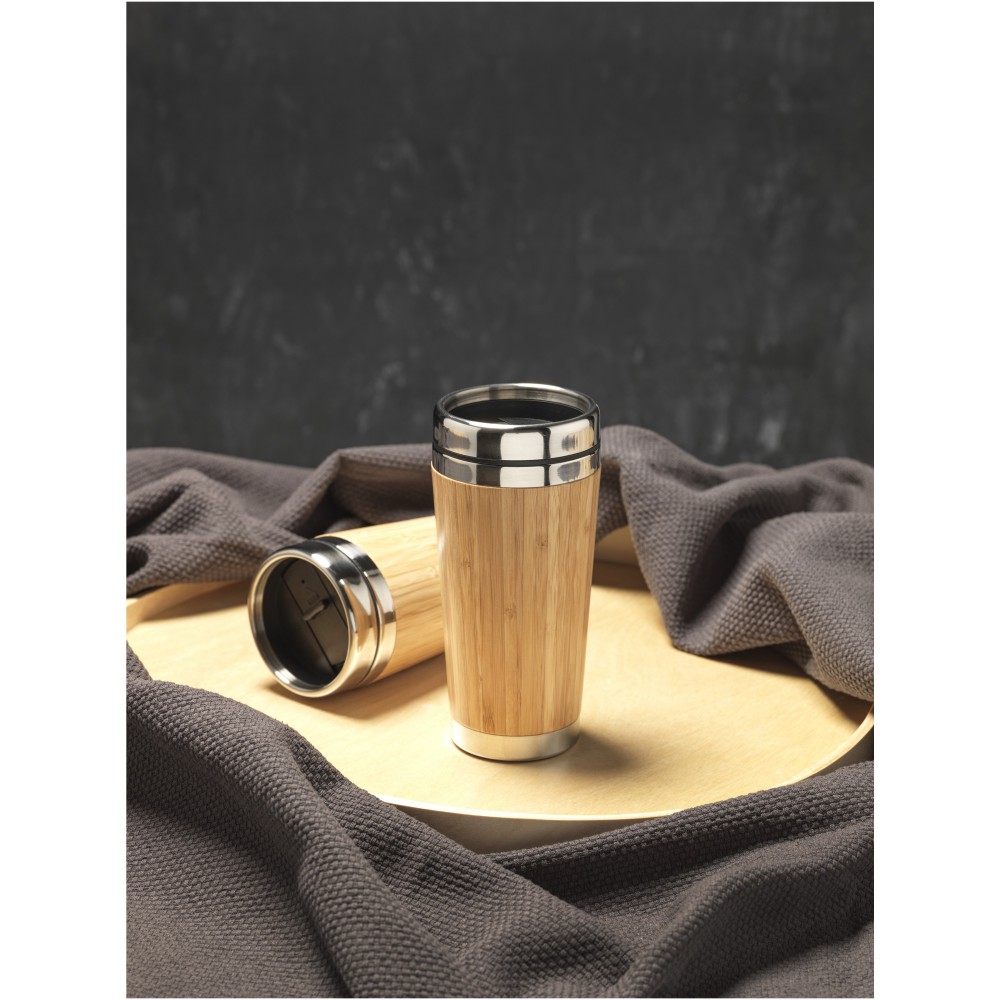 Duplafalú szigetelt pohár rozsdamentes acélból és természetes külső bambuszfelülettel. Melegtartó képesség: 2 óra, a hűtött italok hidegen tartására 4 órán át alkalmas. Nem szivárgásmentes. Szénsavas italokkal nem használható. Mosogatógépben nem mosható és mikrohullámú sütőben történő melegítésre nem alkalmas.