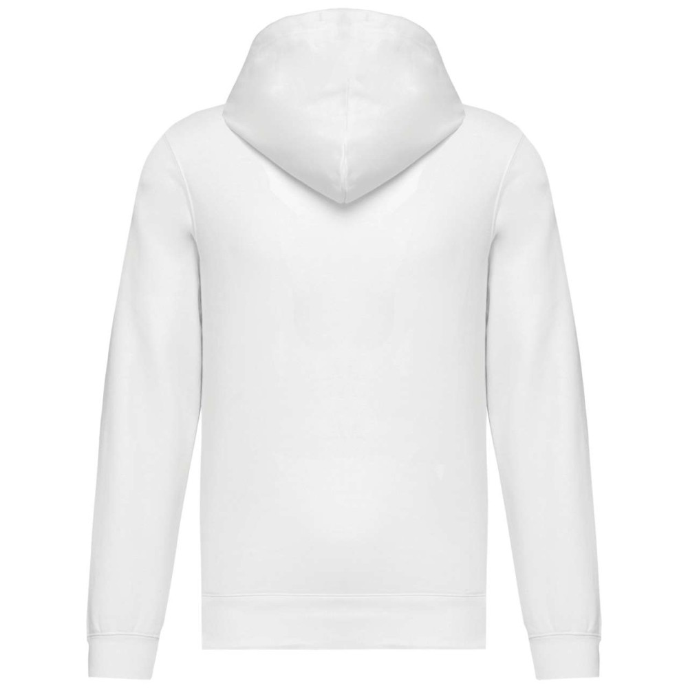 50% gyűrűs fonású pamut / 50% újrahasznosított poliészter, fésült pamut. Egyenes szabású, vágott és varrott. 1x1 bordás kötés a nyakkivágás, a mandzsetta és az alsó szegély jobb megjelenése érdekében. Kenguruzseb. Policotton dzsörzé bélésű kapucni lapos húzózsinórral. Színben illeszkedő dzsörzé szalagos belső a nyakkivágásnál. Csak méretcímke márkajelzés nélkül.