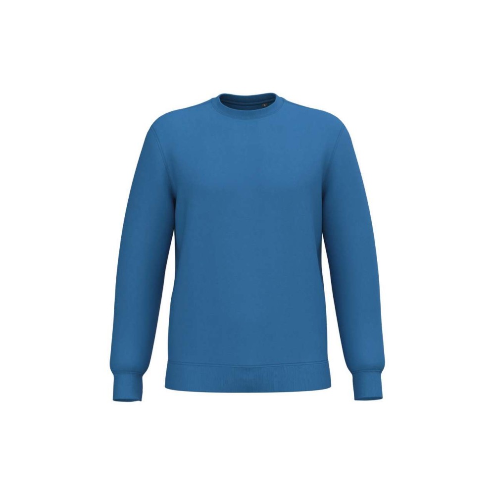 280 g/m2, 50% gyűrött pamut/50% újrahasznosított poliészter. Csiszolt polár anyag, egyenes szabás, környakas fazon. Vágott és varrott, 1x1 bordás, csőszerű összeállítás a nyakvonal, a mandzsetták és az alsó szegély jobb kiviteléért. Tónusban megegyező jersey szalag a nyakvonal belsejében. Nincs márkajelzés a nyakvonalon, csak méretcímke a könnyű dekorálás érdekében.