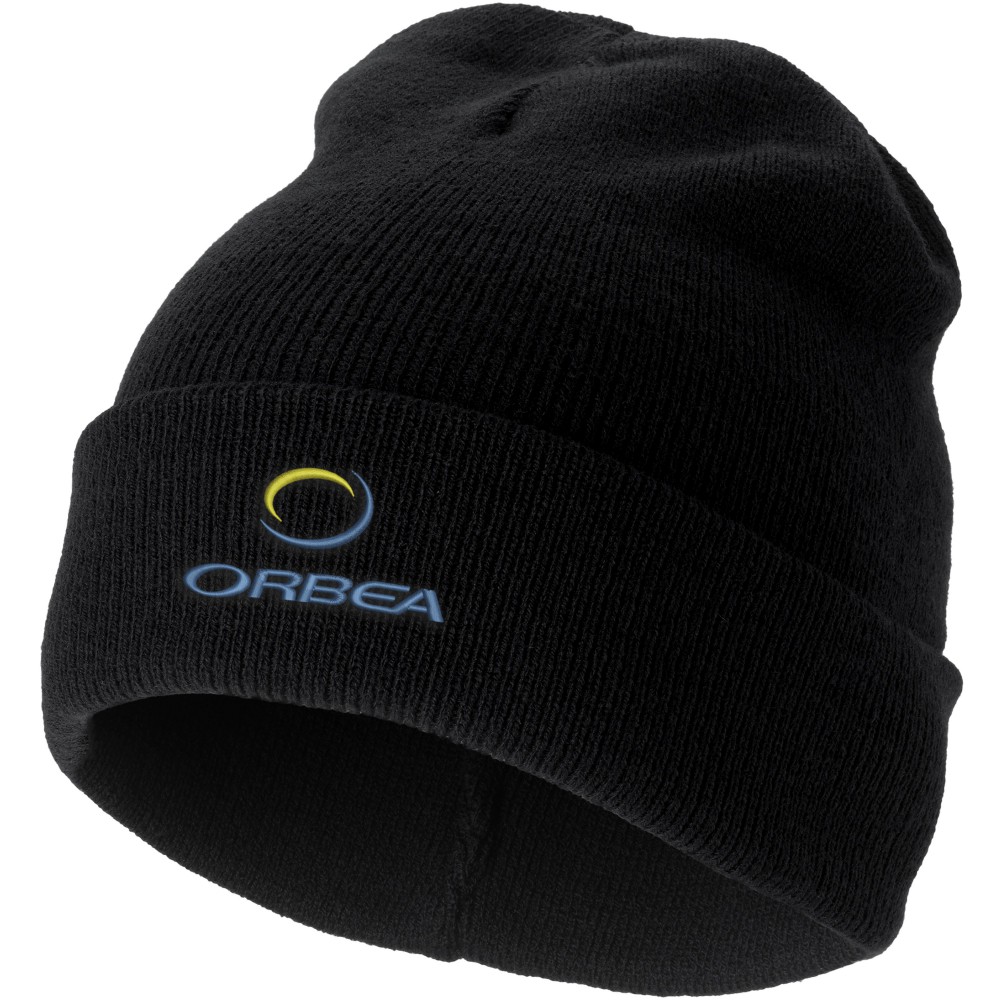 Egyrétegű sapka duplán felhajtott széllel. 1x1-es bordás kötésű, 100% akril.