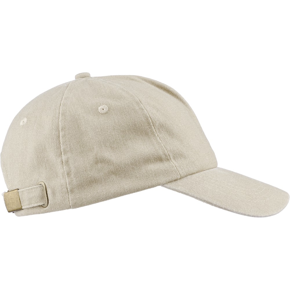 5 paneles baseballsapka 240 g/m2 vászon anyagból, koptatott hatású kivitelben, 7 cm-es ellenzővel, fémcsattal állítható pánttal. Bélés nélkül.