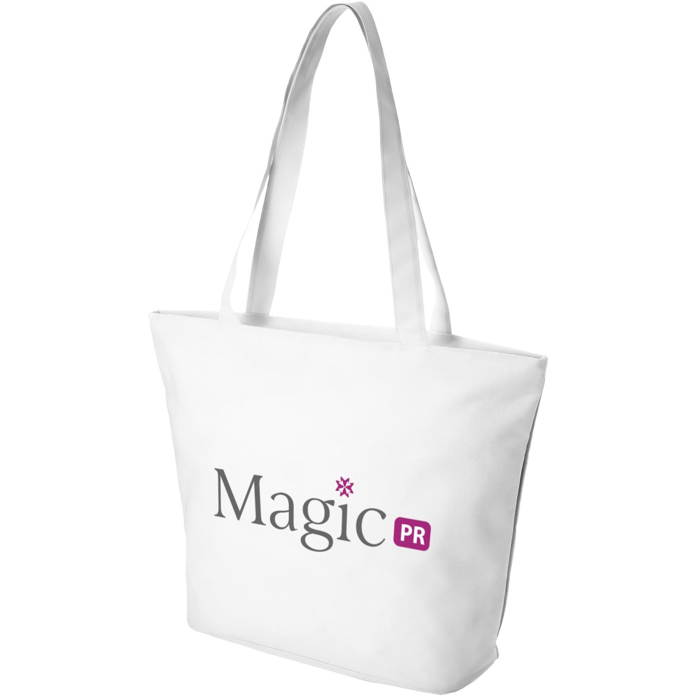 Legyen szó rendezvényről, strandról vagy bevásárlásról, a Panama cipzáras táska a tökéletes többcélú táska. A táska strapabíró 600D poliészterből készült, és egy cipzáras fő rekesszel rendelkezik. A táska belsejében található kis cipzáras zseb helyet biztosít néhány apró tárgynak, például tollnak vagy kulcsoknak. Fülek magassága 34 cm, így vállon is hordható.