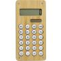 Számológép 8 karakteres kijelzővel, hátul golyós labirintus játékkal. A számológép napelemmel és akkumulátorral rendelkezik. Bambusz és ABS.