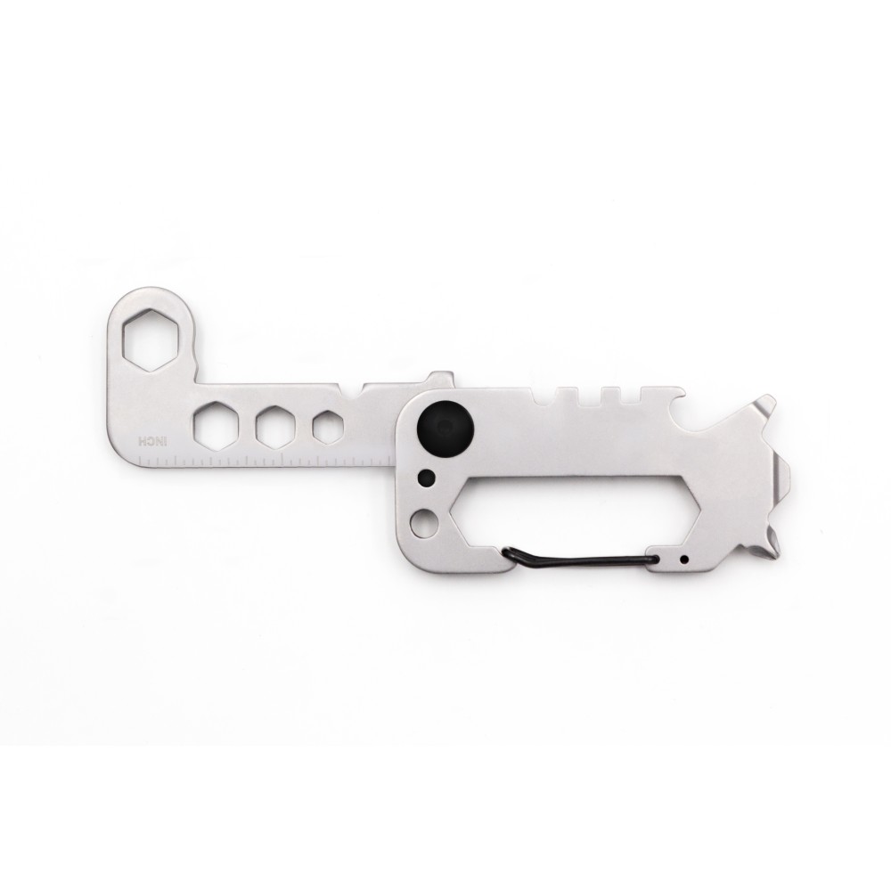 Az edzett 420-as martenzites rozsdamentes acélból készült Twist többfunkciós szerszám a bicklisták kedvence lesz. 8 alapvető szerszámot egyesít egy kompakt csavaros kialakításban, amely kényelmesen illeszkedik a kezedbe. Ez a sokoldalú eszköz tartalmaz egy drótvágót, kerékpárküllős csavarkulcsot, több villáskulcsot (5,5-12 mm), kulcstartót, sörnyitót, karabinerkampót, csillagfejű és lapos csavarhúzókat, valamint egy vonalzót. Fekete dobozba csomagolva puha habszivacs betéttel a védelem érdekében, egyszerre elegáns és praktikus, ideális a mindennapi feladatokhoz.