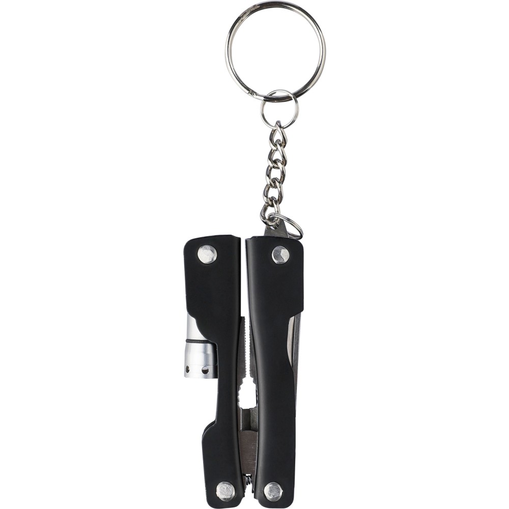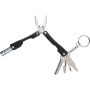 Összecsukható multifunkciós szerszám 10 funkcióval és LED zseblámpával. 600D poliészter tokban, tépőzáras záródással. A tok övre rögzíthető. Tartalmazza az elemeket. Egyenként barna kartondobozba csomagolva. Anyaga: rozsdamentes acél.