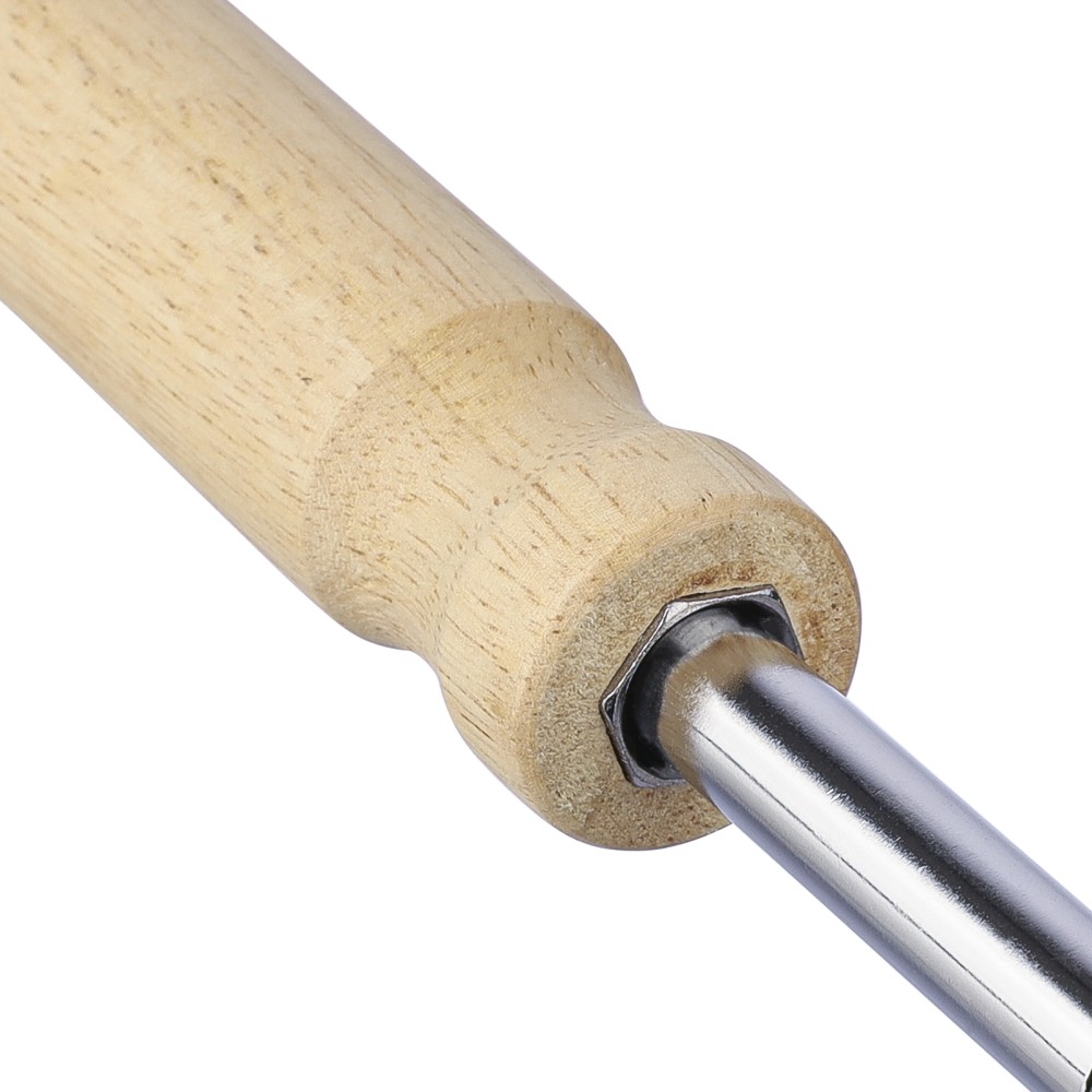 Kaucsukfa csavarhúzókészlet a nyélben tartható 4 db mágneses fejjel (2-2 db mindegyik kétoldalas hegyen). Praktikus és kompakt kialakítás cserélhető fejekkel és tartóval. Csomagolása barna papírdoboz.