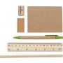 Tartalma: vonalzó, golyóstoll, ceruza, hegyező, radír, jegyzettömb. Nemszőtt anyag.