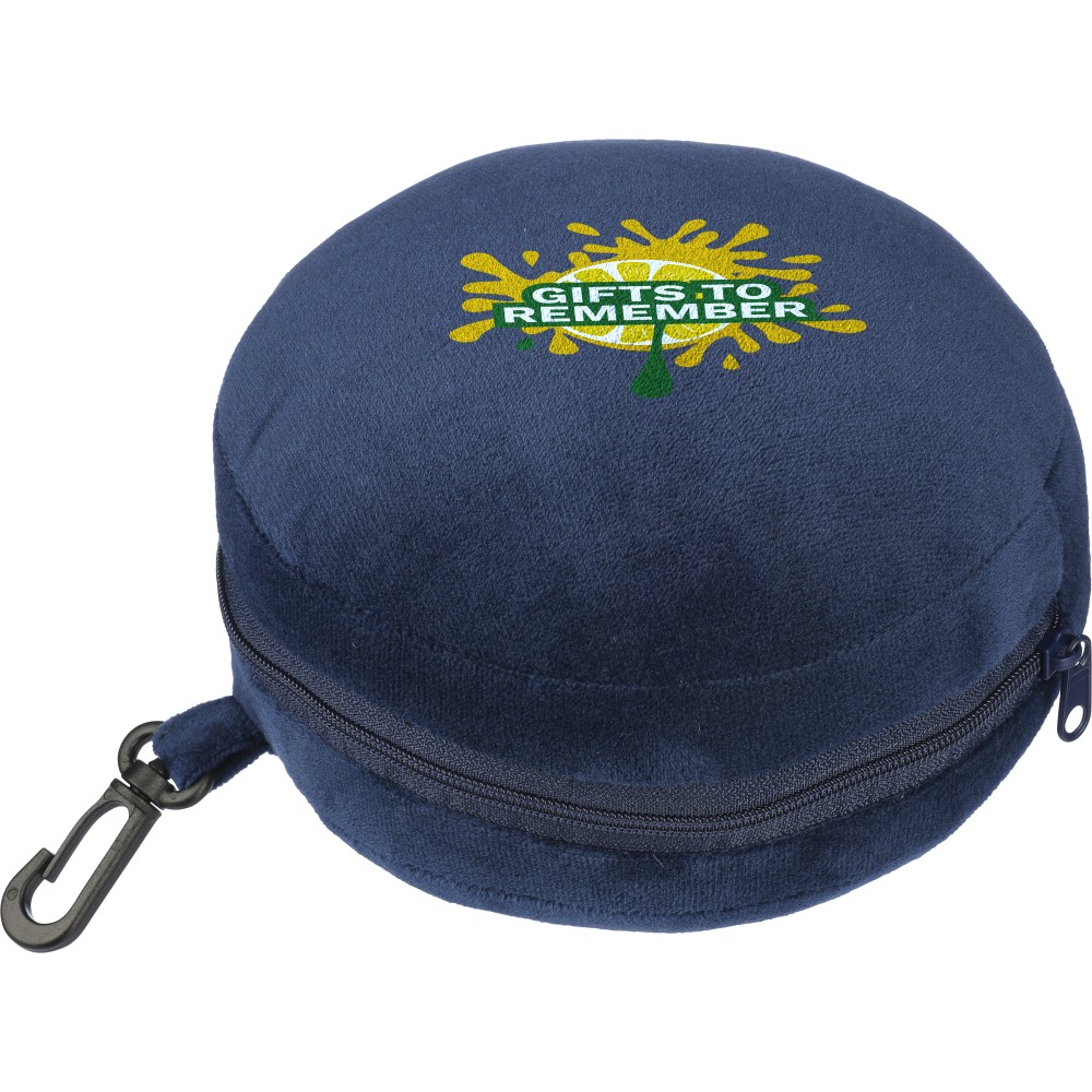 Poliészter utazópárna szett puha poliészter és PP pamut töltettel. Szemmaszkként, és párnaként is használható. PP karabinerrel.