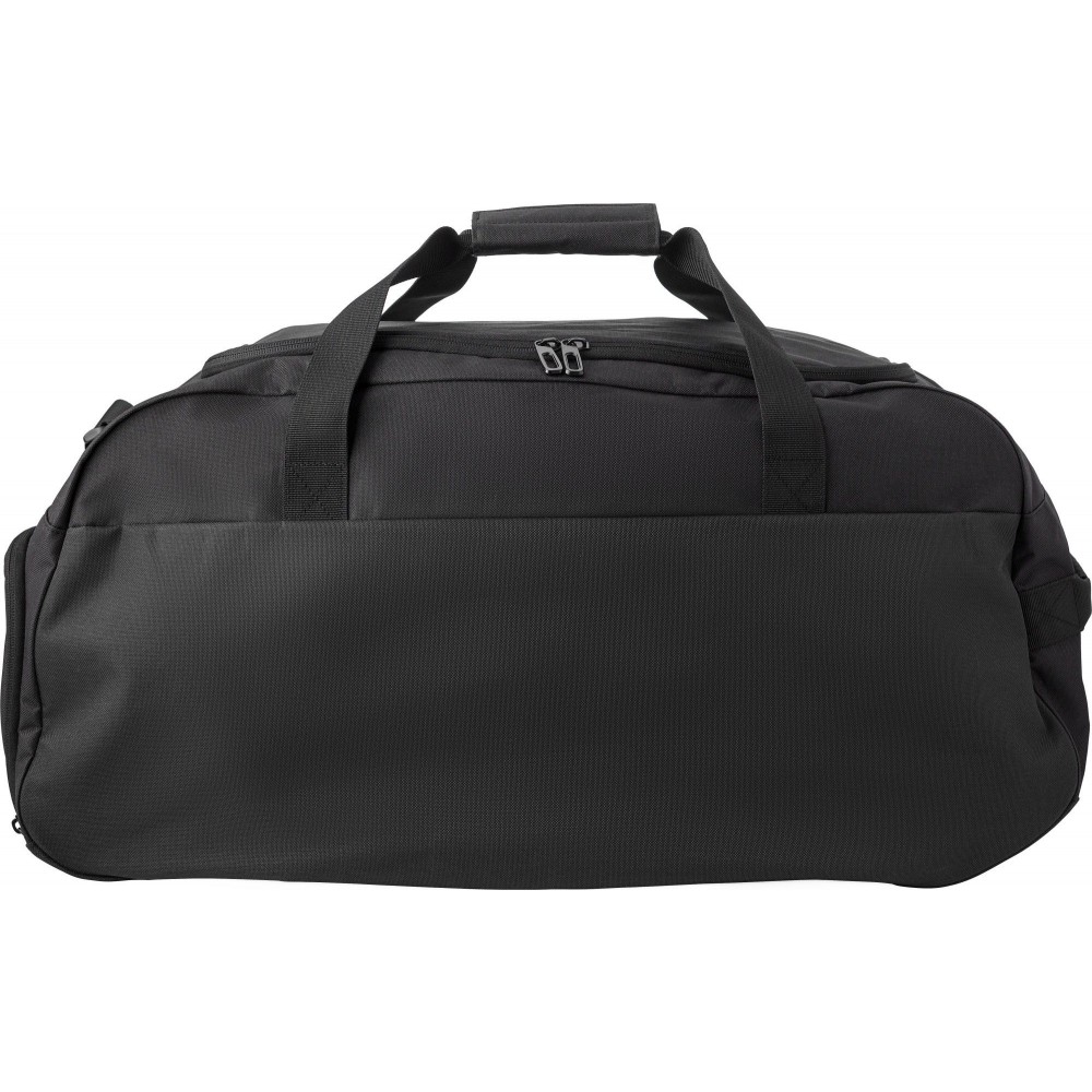 Sporttáska egy nagy fő résszel és egy cipzáros oldalzsebbel, állítható vállpánttal, aljmerevítővel. 600D poliészter.