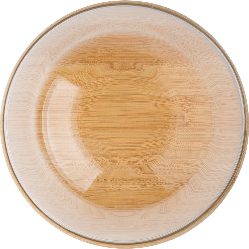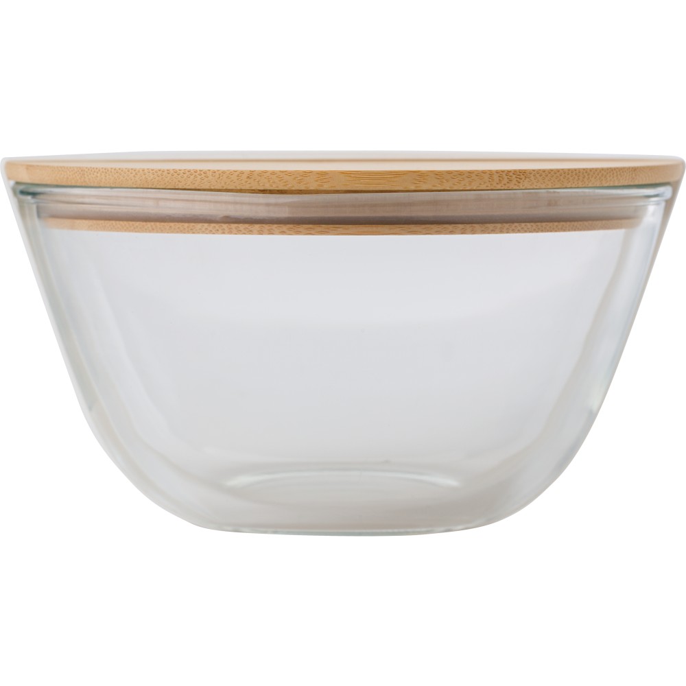 Üveg salátástál bambusz fedéllel és szilikon zárószalaggal. Kapacitás 1200 ml. Speciális erősített üveg (boroszilikát). Vékony, de erős üveg. Egyenként barna kartondobozba csomagolva érkezik.
